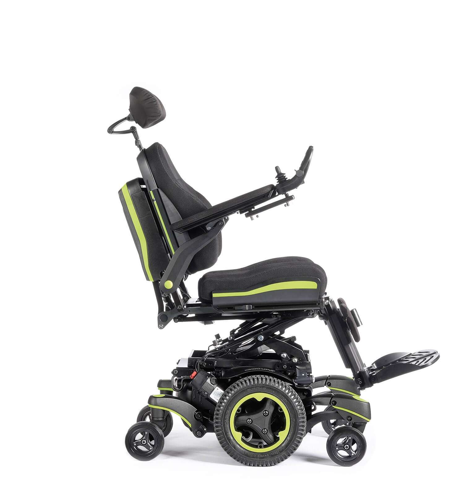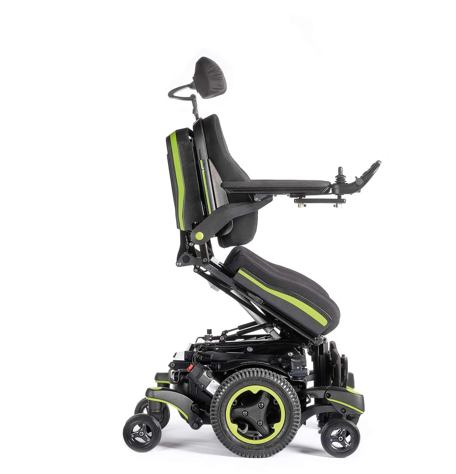 Ao girar sobre o seu próprio eixo, as cadeiras de rodas elétricas de exterior Q700M proporcionam uma condução muito simples e intuitiva e uma excelente capacidade de manobra em espaços interiores e reduzidos, graças à sua base estreita (62 cm) e a um raio de viragem desde 56 cm. Além disso, com uma altura de banco baixa de apenas 44,5 cm, poderá deslizar facilmente debaixo das mesas e aceder a veículos adaptados para cadeiras de rodas.