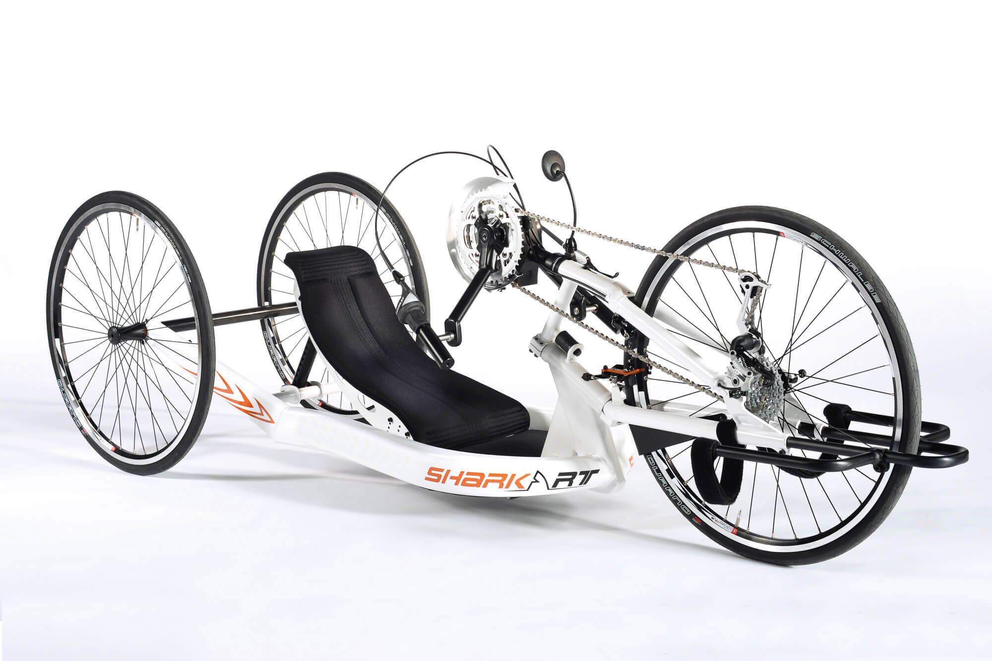 A handbike ideal para todos aqueles que querem sentir a libertade. Tal como a versão de competição, RGK Shark RT oferece uma excelente condução e um peso reduzido, graças ao desenho da estrutura, que oferece uma grande rigidez. Com guiador ajustável. Não fique parado... a diversão espera-o!