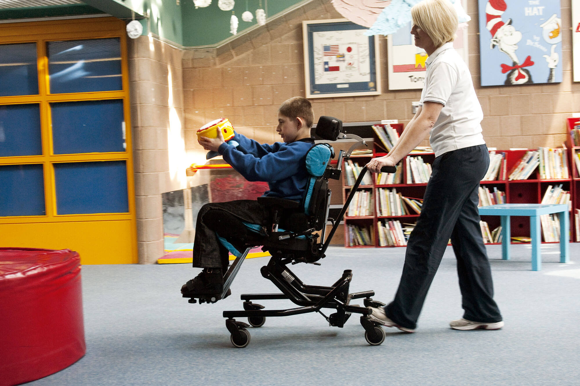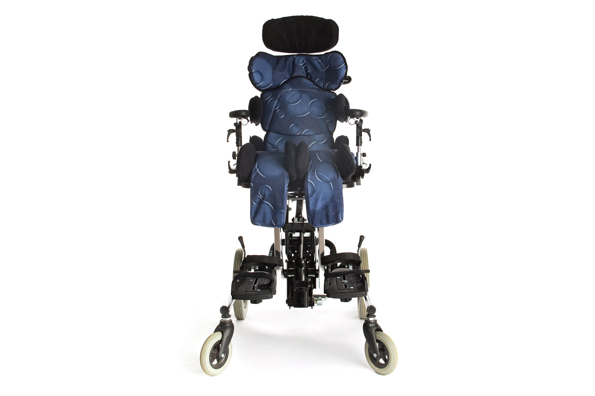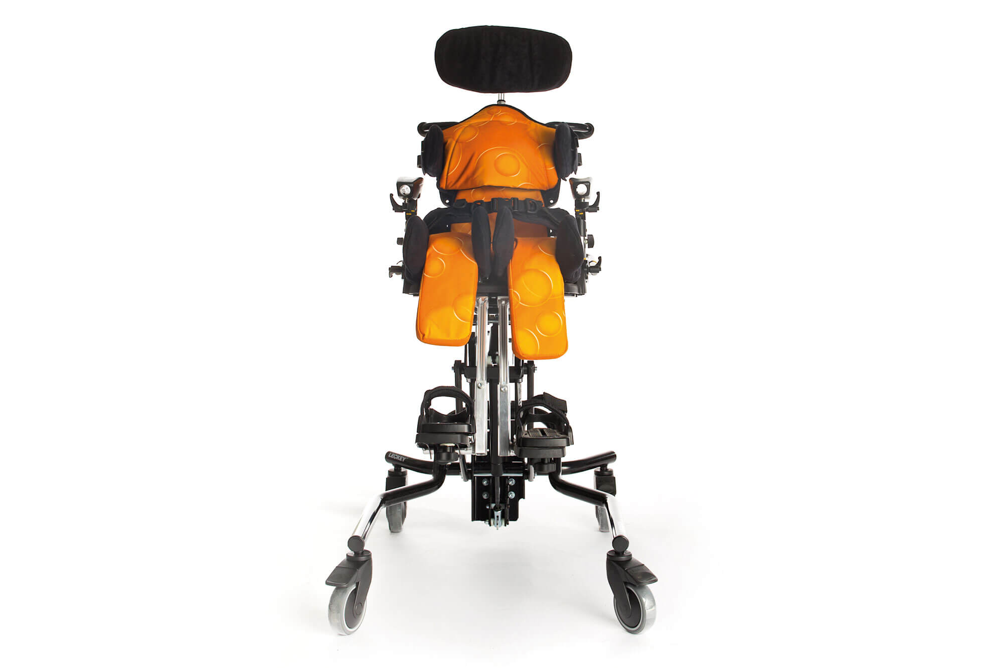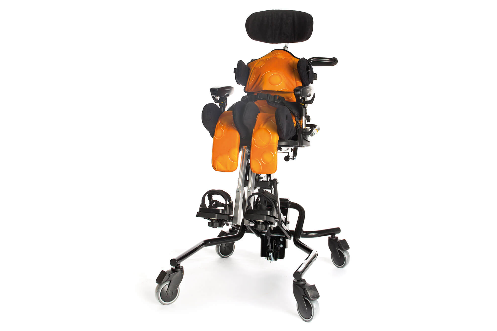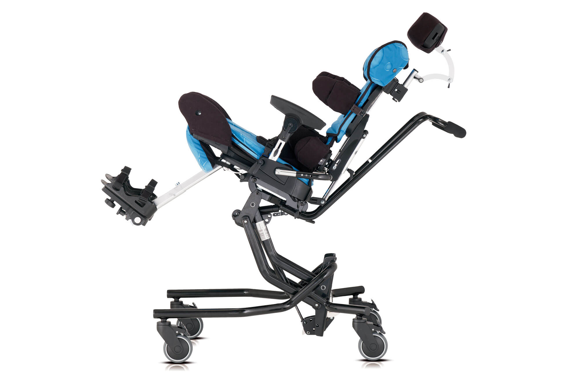 O chassis Hi-Low pode ser ajustado em altura para chegar ao solo ou à mesa, permitindo que a criança participe tanto em atividades de grupo como individuais. Está ainda equipado com um sistema basculante que facilita as diferentes posturas. Todos os ajustes podem ser realizados com segurança, inclusive com a criança sentada na cadeira.